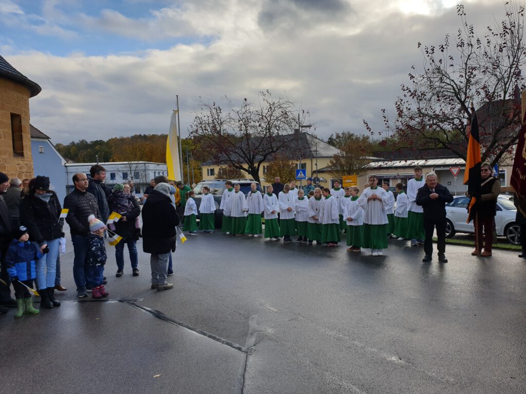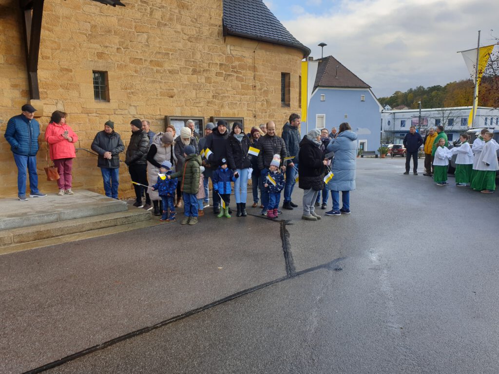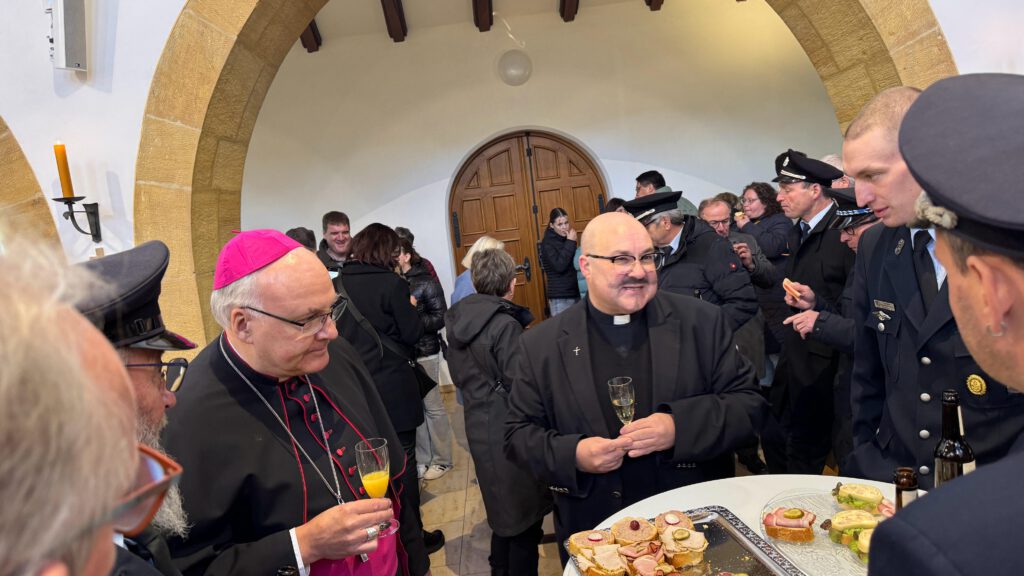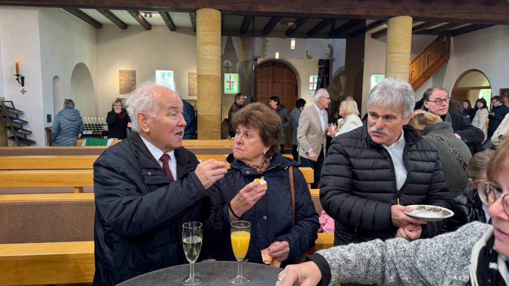 Anschließend wurde der Stehempfang wegen des schlechten und kalten Wetters in die Kirche verlegt.